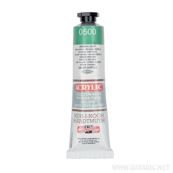 Akrilna boja Koh-I-Noor Hardtmuth u nijansi svijetlo zelena (Green Light) namijenjena je umjetnicima, hobistima i školama. Boja je na bazi vode, brzo se suši i nakon sušenja postaje vodootporna, što osigurava dugotrajnost i stabilnost boje.