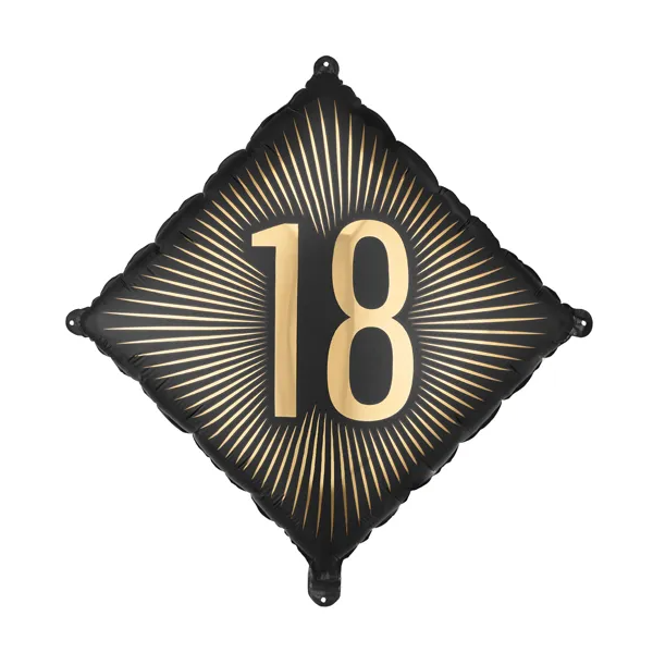 Folijski balon s brojem 18 u elegantnoj crno-zlatnoj kombinaciji idealan je izbor za proslavu punoljetnosti. Moderan dizajn sa zlatnim natpisom i dekorativnim zrakastim uzorkom daje poseban svečani dojam svakoj proslavi.
