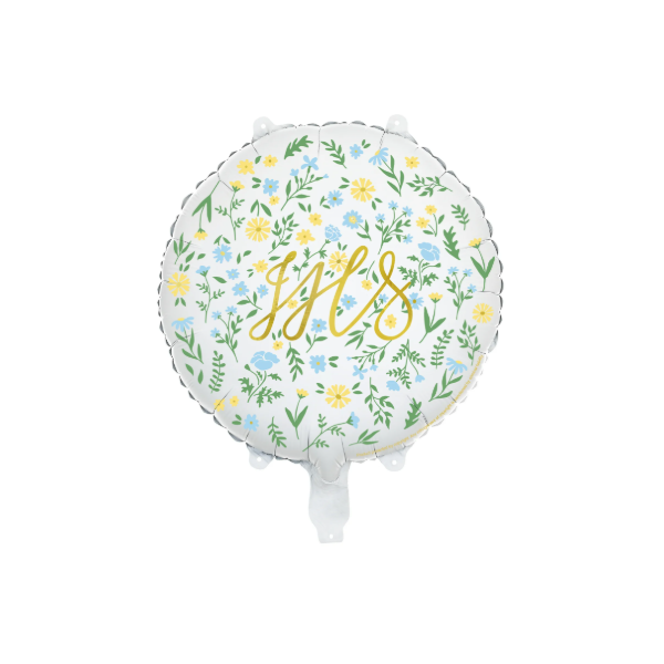 Folični balon IHS 45 cm (MIX) elegantan je dekorativni dodatak namijenjen obilježavanju Prve pričesti i sličnih sakramentalnih prigoda. Balon je ukrašen nježnim cvjetnim motivima i istaknutim zlatnim natpisom IHS, koji simbolizira Isusa Krista i često se koristi u pričesnim dekoracijama.