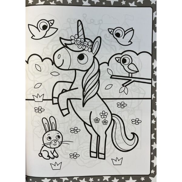 U ovoj veseloj bojanci pronaći ćeš 80 prizora za bojenje i 50 super blještavih naljepnica te ćeš uživati ukrašavajući genijalne jednoroge i maštovite krajolike.