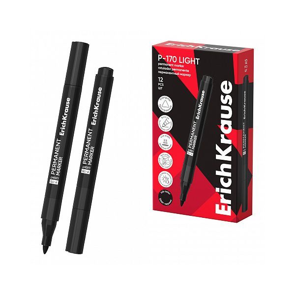 Erich Krause P-170 Light permanentni marker idealan je za pisanje i označavanje na papiru, kartonu, plastici, metalu, staklu i drugim glatkim površinama. Opremljen je finim vrhom koji omogućuje precizno pisanje i uredne linije.