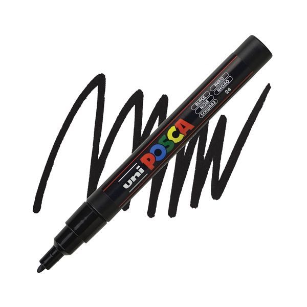 Flomaster Uni POSCA PC-3M u crnoj boji koristi visokokvalitetnu pigmentnu boju na bazi vode, bez neugodnih mirisa i štetnih otapala. Srednje tanki vrh (0,9–1,3 mm) idealan je za precizno pisanje, crtanje i detaljne ilustracije.