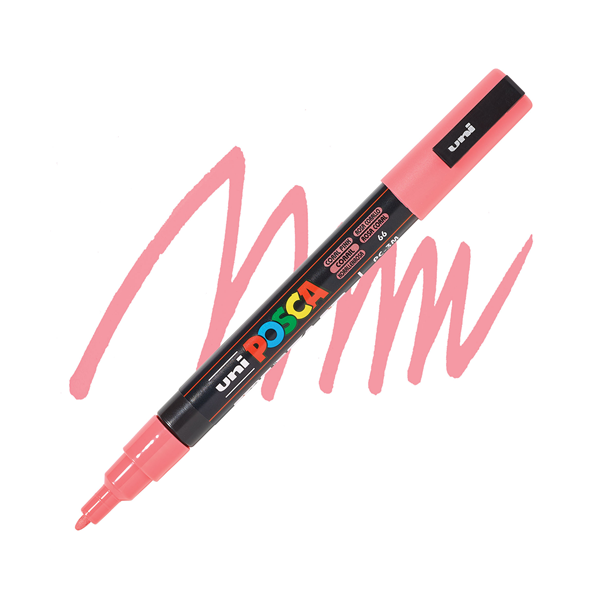 Flomaster Uni POSCA PC-3M u nijansi koraljno roza koristi visokokvalitetnu pigmentnu boju na bazi vode, bez neugodnih mirisa i otapala. Srednje tanki vrh (0,9–1,3 mm) omogućuje precizno pisanje, crtanje i dekorativne radove.