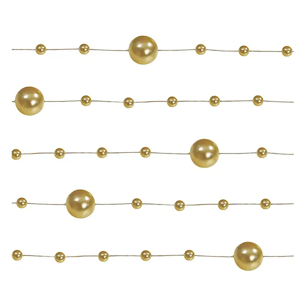 Girlanda od bisera zlatna 5/1 1,3 m (GP24) sofisticiran je dekorativni dodatak koji prostoru daje luksuzan i elegantan izgled. Sastoji se od zlatnih perlastih kuglica raspoređenih duž niti, stvarajući profinjen i svečan vizualni efekt.