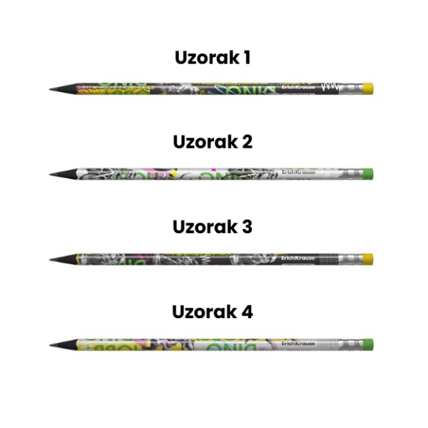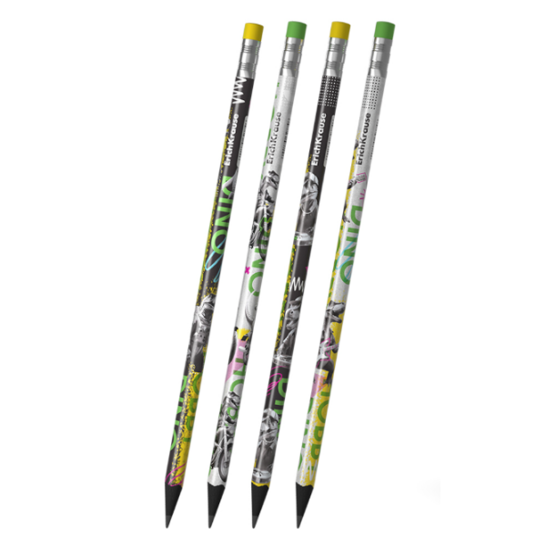 HB tvrdoća omogućuje glatko pisanje bez grebanja papira i bez mrvljenja. Na vrhu se nalazi kvalitetna gumica izrađena od ekološki prihvatljive TPR gume, bez PVC-a, koja učinkovito briše tragove bez oštećenja papira.