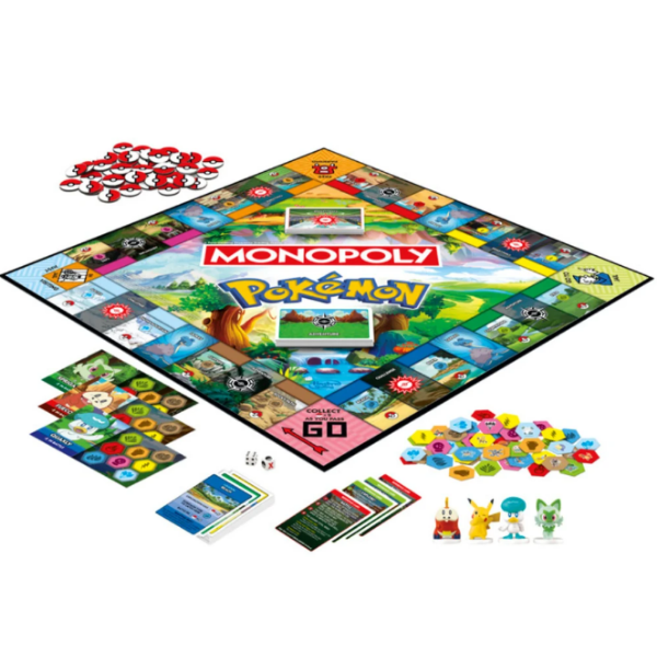 Hasbro Monopoly Pokémon spaja dobro poznatu mehaniku Monopolyja s popularnim Pokémon svijetom, stvarajući dinamičnu i zabavnu društvenu igru za djecu i obitelj. Umjesto ulica i zgrada, igrači putuju pločom, hvataju divlje Pokémone i skupljaju bodove kako bi pobijedili.