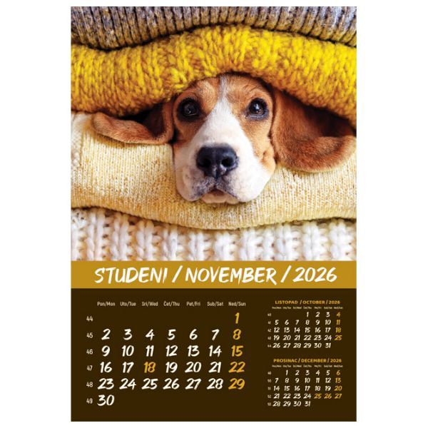 Kalendar Kućni ljubimci 2024. Dimenzija: 33x48 cm Pasica za dotisak: 33x6 cm Broj listova: 13 Uvez: spiralni