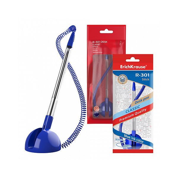 Erich Krause R-301 Classic kemijska olovka na stalku namijenjena je za svakodnevnu upotrebu na recepcijama, blagajnama, šalterima, uredima i prodajnim mjestima. Opremljena je spiralnim kabelom koji omogućuje slobodno pisanje bez opasnosti od gubitka olovke.