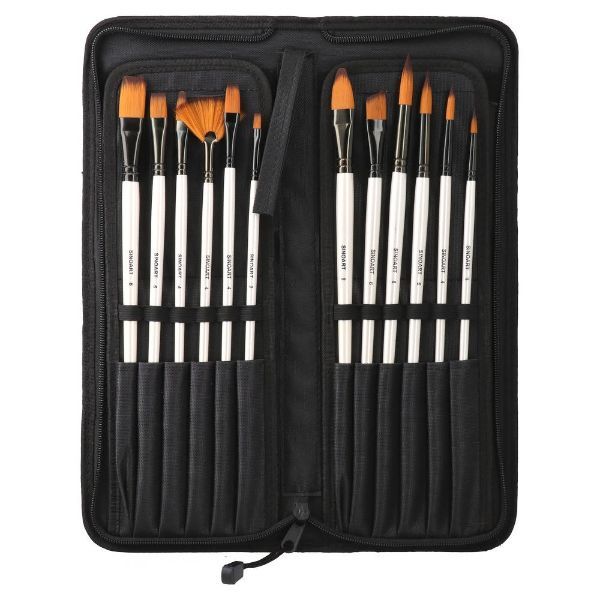 Ovaj komplet od 12 visokokvalitetnih kistova savršen je izbor za umjetnike, hobiste, studente i sve koji uživaju u slikanju različitim tehnikama. Set dolazi u elegantnoj i čvrstoj zatvorenoj torbici na patent, koja omogućuje jednostavno prenošenje, zaštitu vlakana i urednu organizaciju svakog kista.