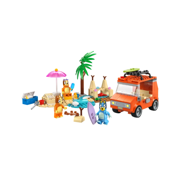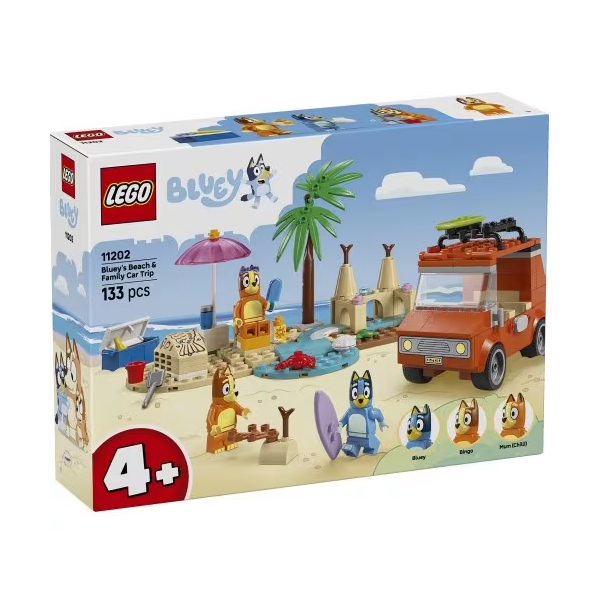 LEGO® Bluey 11202 – Bluey na obiteljskom izletu na plažu donosi veselu i opuštenu atmosferu popularne animirane serije Bluey u LEGO svijet. Set prikazuje obiteljski izlet na plažu s prepoznatljivim likovima, vozilom, plažnim rekvizitima i detaljima koji potiču maštovitu igru.