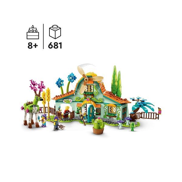 Djeca mogu pomoći likovima iz DREAMZzz serijala u brizi o čudesnim životinjama, otkrivati skrivene prostore i otključavati nove avanture. Set uključuje živopisnu staju s pokretnim dijelovima, prelijepu cvjetnu vjetrenjaču, fantastične biljke te razna mistična stvorenja poput cvjetnog jelena i gljivolikih čuvara.