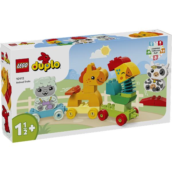 LEGO DUPLO 10412 – Animal Train savršen je set za male istraživače od 1,5+ godine. Ovaj šareni i simpatični vlak sastavljen je od tri vagona na kotačima, a svaki od njih nosi jednu životinju – ovčicu, konja i veselog pijetla. Djeca mogu životinje slagati, rastavljati i mijenjati im izgled jer su kocke namijenjene malim rukama i jednostavne za upotrebu.