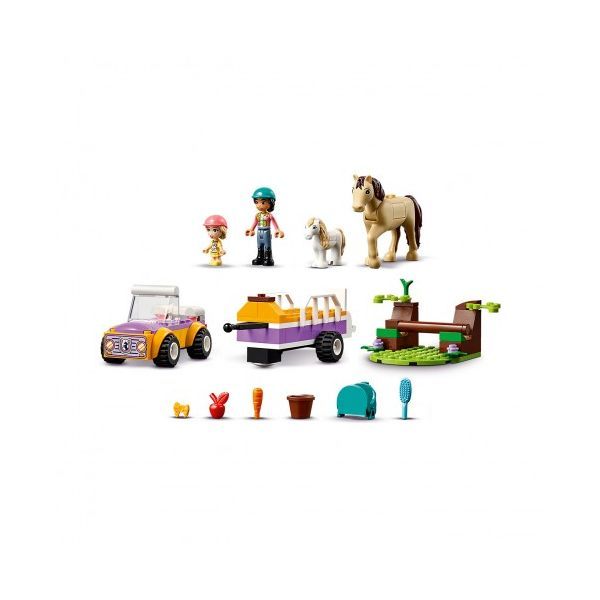 Set uključuje automobil s prikolicom za prijevoz konja, dva konja različitih veličina te poligon za trening gdje djeca mogu uvježbavati preskakanje i brigu o životinjama. Mini figure Liann i Zoya spremne su za avanturu – od jahanja, njege konja, do vožnje prikolice kroz prirodu.