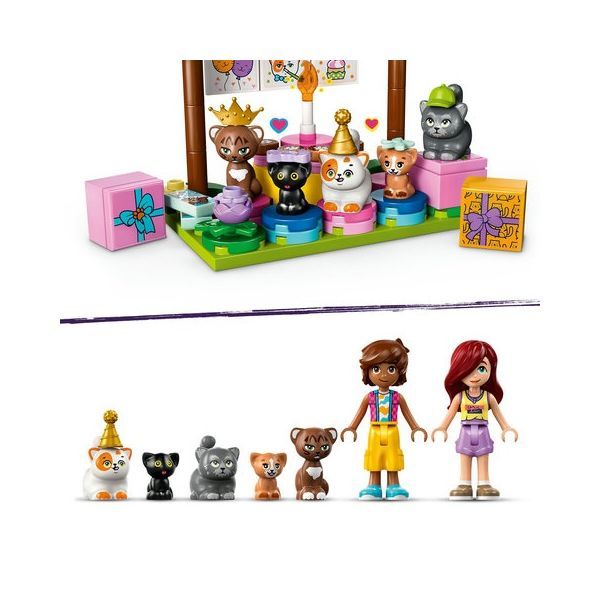 LEGO Friends 42666 „Cat Birthday Party“ savršen je set za svu djecu koja obožavaju mačke i maštovitu igru! Upoznajte Paisley i Lea dok organiziraju nezaboravnu rođendansku proslavu za svoje omiljene mace – Churra, Pluta, Beara, Nuggeta i Peri.