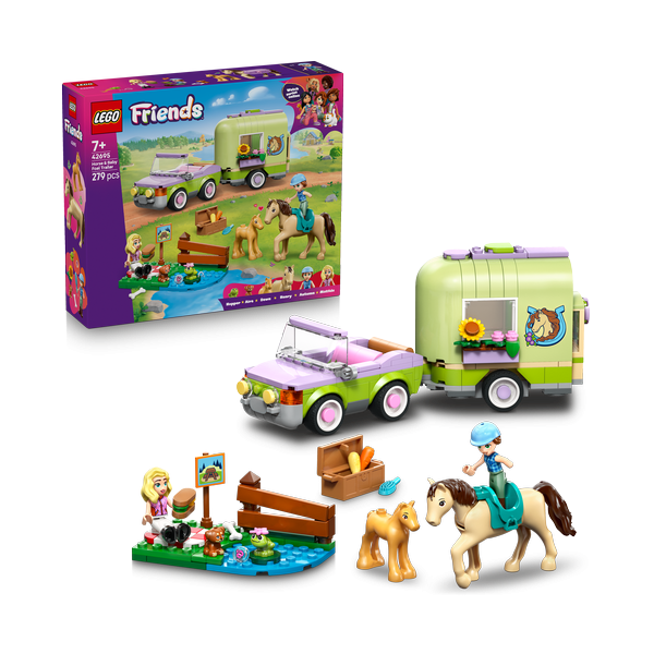 LEGO Friends 42695 Prikolica za kobilu i ždrijebe savršen je set za djecu koja vole konje i igru na otvorenom. Ovaj detaljno osmišljen set uključuje vozilo s prikolicom za prijevoz konja, kao i figure kobile i ždrijebeta.