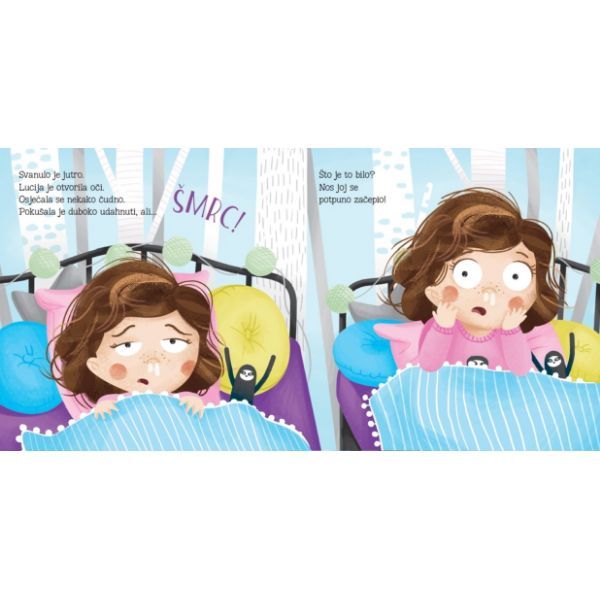 Ajoj, malena Lucija se prehladila! Ima temperaturu i začepljen nos. Ta je prehlada baš dosadna, ne može se ići van igrati! To nikako nije u redu pa joj mama i tata nastoje pomoći da čim prije ozdravi i bude bolje volje.