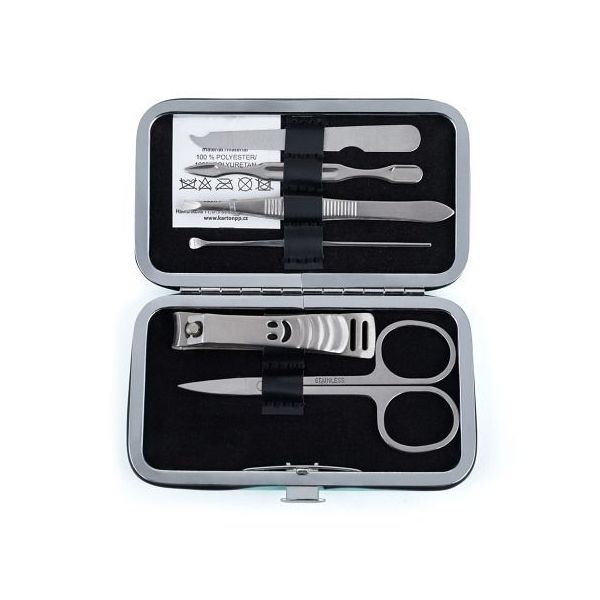 Sadrži škare za nokte, grickalicu za nokte, kosu pincetu, turpiju, manikir štapić i potiskivač zanoktica – sve što vam je potrebno za kompletnu njegu na jednom mjestu.