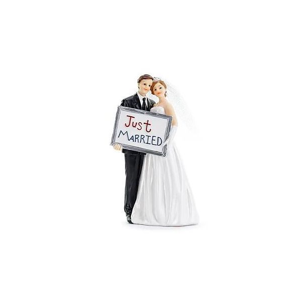 Figurica mladenci za tortu elegantan je i klasičan ukras koji upotpunjuje svadbenu tortu i čini je posebnim dijelom vjenčane svečanosti. Mladenci su prikazani u svečanoj odjeći, s dekorativnim natpisom Just Married, što simbolizira početak zajedničkog života.
