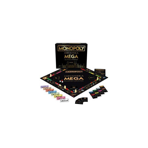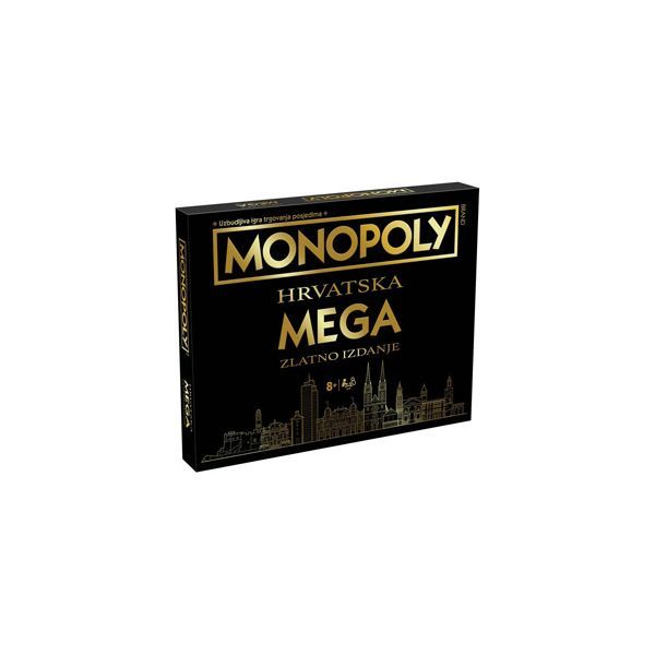 Monopoly Gold – Hrvatska Mega zlatno izdanje namijenjeno je igračima koji žele više strategije, dulju igru i ekskluzivan dizajn. Ovo posebno izdanje donosi MEGA ploču s više polja od klasične verzije, dodatne nekretnine i veće novčanice, što igru čini dinamičnijom i izazovnijom.