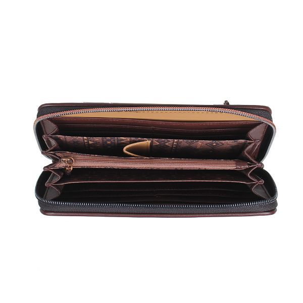 Ovaj predivni Janet Denese novčanik iz kolekcije Maya Journey donosi dašak drevne Maya kulture kroz detaljno oslikan prednji dio. Upečatljivi motivi piramida, tradicionalnih simbola, kalendara i stiliziranih ilustracija stvaraju jedinstvenu priču o izgubljenim civilizacijama i bogatoj povijesti.