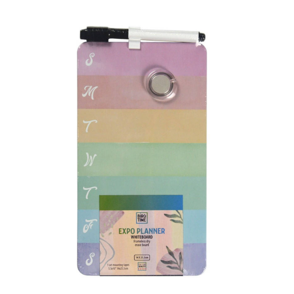 Ovaj praktični magnetni Expo planer / planer piši-briši savršen je alat za organizaciju svakodnevnih obaveza. Bez okvira, modernog i nenametljivog dizajna s diskretnom točkastom podlogom, planer pruža dovoljno prostora za pisanje bilježaka, to-do listi ili kratkih poruka.