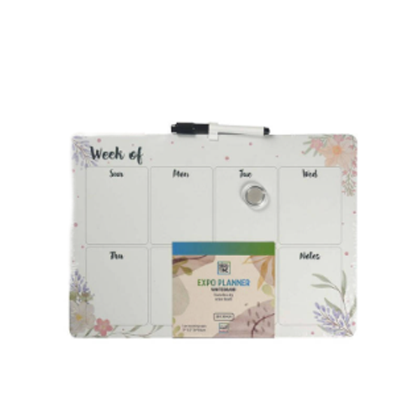 Expo Planner bijela ploča (28 × 39,4 cm) idealna je za svakodnevnu organizaciju u kućanstvu, uredu ili učionici. Ovaj praktični planer nudi tri jasno označene sekcije: Groceries, Personal Goals i Notes, što omogućuje jednostavno praćenje obaveza, kupovine i osobnih ciljeva na jednom mjestu.