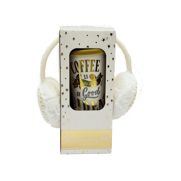 Set sadrži termo šalicu koja održava toplinu napitaka te mekane, udobne naušnjake koje pružaju zaštitu od hladnoće tijekom zimskih mjeseci.