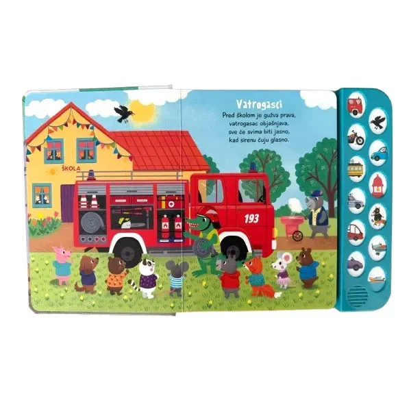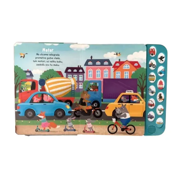 Poslušaj i nauči kako nešto ovdje zvuči! Veseli stihovi i lijepe ilustracije u ovoj slikovnici o zvukovima iz grada oduševit će najmlađe.