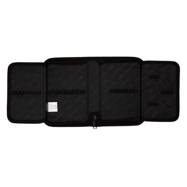 Unutrašnjost je raspoređena u tri funkcionalna odjeljka, svaki opremljen elastičnim držačima za olovke, bojice, markere i ostali pribor. Dodatni džepić sa zatvaračem idealan je za gumice, šiljila i manje sitnice. Materijal je čvrst, kvalitetan i otporan na svakodnevno korištenje, a robustan patentni zatvarač osigurava sigurnost sadržaja.