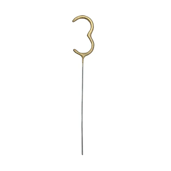 Prskalica u obliku broja 3 u elegantnoj zlatnoj boji idealna je dekoracija za rođendanske proslave i posebne prigode. Savršeno se uklapa kao ukras na torti ili kao dodatni efekt tijekom slavlja.