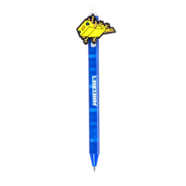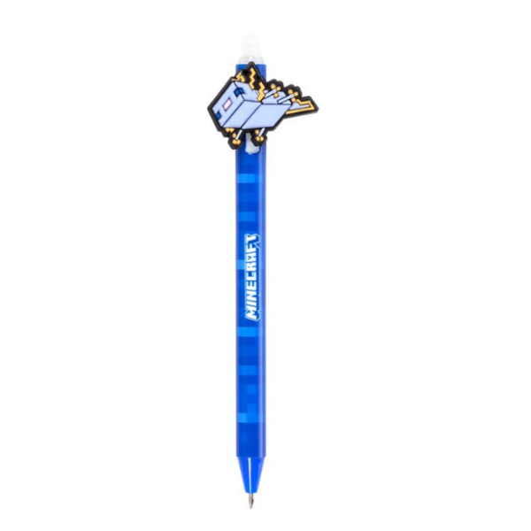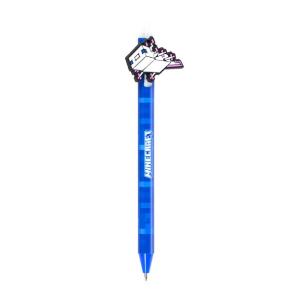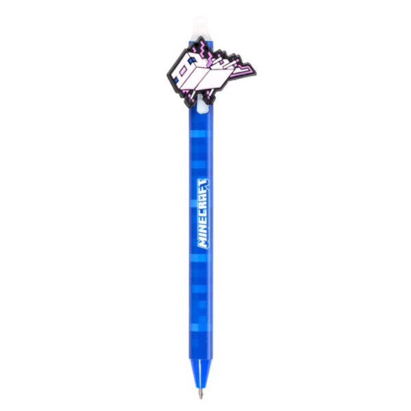 Plava olovka sa stiliziranim Minecraft uzorkom udobna je za držanje, a mekana gumena figurica Axolotla daje joj poseban šarm koji će obožavati svi mali i veliki fanovi igre.