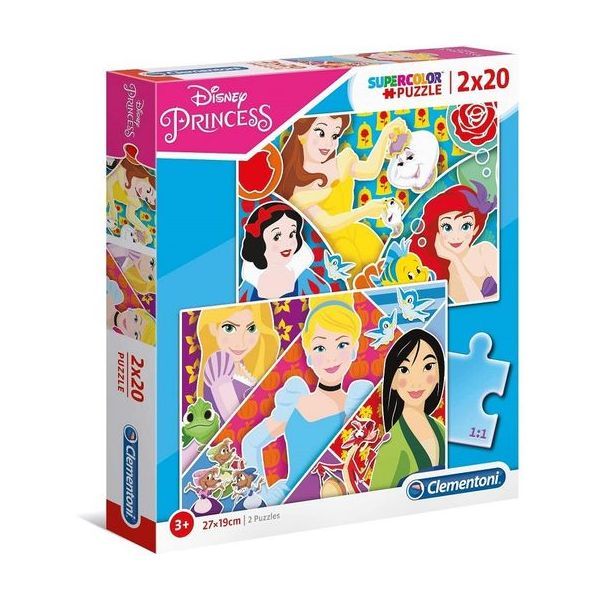Puzzle Clementoni Princess 24766 sastoje se od dva seta po 20 dijelova, posebno prilagođena djeci predškolske dobi. Svaki motiv prikazuje popularne Disney princeze u živim bojama i jednostavnim ilustracijama koje potiču interes, maštu i koncentraciju djece.