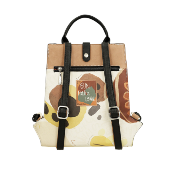 Dizajn ruksaka kombinira toplu paletu boja, kontrastne detalje, prepoznatljivu Anekke ilustraciju i dekorativne ukrase koji mu daju originalan i upečatljiv izgled. Poruka „Dance with your Alma“ dodatno naglašava emotivan karakter kolekcije i čini ovaj model modnim dodatkom koji se lako izdvaja u svakodnevnim kombinacijama.