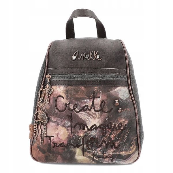 Anekke ruksak iz Land kolekcije kombinira originalnu umjetničku estetiku s izvanrednom funkcionalnošću. Prednja strana ukrašena je prepoznatljivom Anekke ilustracijom u toplim tamnim tonovima, uz natpise Create – Imagine – Transform koji daju posebnu emocionalnu notu.