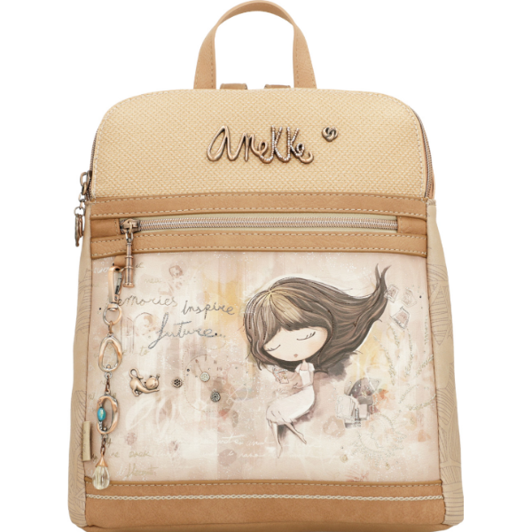 Anekke Memories ruksak savršen je spoj romantičnog dizajna i svakodnevne praktičnosti. Ovaj očaravajući model iz kolekcije Memories izrađen je u toplim bež i nude tonovima, uz prepoznatljivu ilustraciju Anekke koja odiše nježnošću i nostalgijom. Natpis “Memories inspire future” naglašava tematsku poruku kolekcije – da nas uspomene oblikuju i vode naprijed.