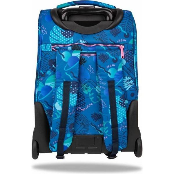 Sadrži čvrste kotače i teleskopsku ručku koja se jednostavno izvlači, pretvarajući ruksak u praktičnu školsku torbu na kotačima. Kad se ruksak nosi na leđima, podstavljene naramenice i stražnji dio pružaju udobnost tijekom hodanja.