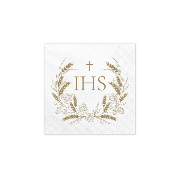 Salvete za Prvu pričest IHS zlatne dizajnirane su kako bi upotpunile svečanu atmosferu ovog važnog sakramenta. Klasičan bijeli podlog s profinjenim zlatnim IHS simbolom, križem i pšeničnim klasjem simbolizira euharistiju, vjeru i čistoću, čineći ih idealnim izborom za obiteljska okupljanja, proslave i svečane ručkove.