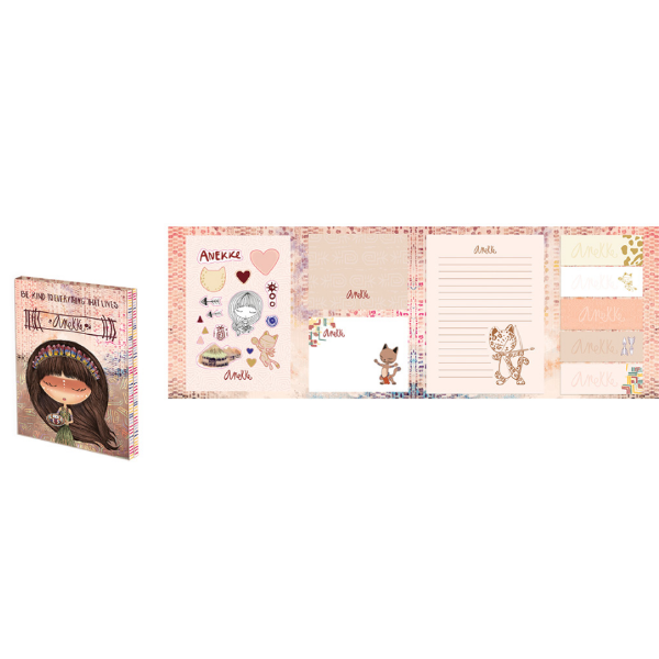 Anekke set bilježnica pruža savršenu kombinaciju funkcionalnosti i kreativnosti za sve ljubitelje čarobnog Anekke svijeta. U elegantnoj tvrdoj mapici nalazi se bilježnica s linijama, razni ljepljivi papirići u više veličina te kolekcija preslatkih naljepnica.