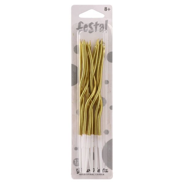 Svjećice dolaze s praktičnim bijelim držačima koji omogućuju jednostavno i sigurno postavljanje u tortu. Njihova atraktivna spiralna forma i sjajna zlatna boja idealni su za sve vrste proslava – dječjih rođendana, elegantnih zabava ili tematskih partyja.