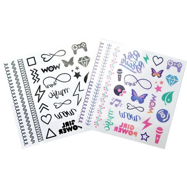 Set sadrži listove s različitim motivima – od munja, srca, leptira, glazbenih nota i gaming ikonica pa sve do inspirativnih natpisa poput Girl Power, WOW i Be You.