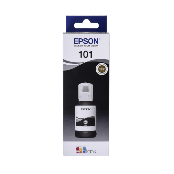 Originalna tinta Epson 101 Crna (C13T03V14A) namijenjena je Epson EcoTank pisačima s ink-tank sustavom, poput modela L4150. Zahvaljujući velikom pakiranju od 127 ml, omogućuje ispis velikog broja stranica uz izuzetno nizak trošak po ispisu.