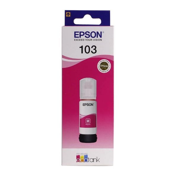 Originalna tinta Epson 103 Magenta (T00S3 / C13T00S34A) namijenjena je Epson EcoTank pisačima s ink-tank sustavom. Posebno formulirana tinta omogućuje ravnomjeran protok, precizne i postojane magenta tonove te pouzdane rezultate pri svakom ispisu.