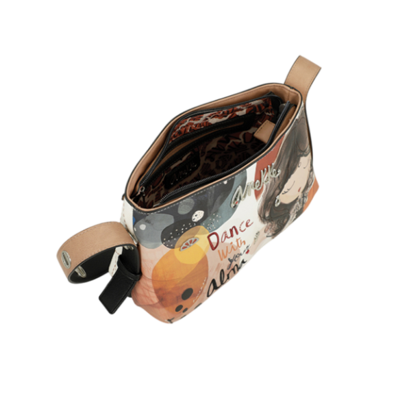 Ovaj model ističe se prepoznatljivom Anekke ilustracijom, toplim zemljanim tonovima i porukom „Dance with your Alma“, koja torbi daje emotivan i upečatljiv karakter. Dekorativni detalji, kombinacija uzoraka i pažljivo oblikovani dodaci čine je modnim komadom koji se lako izdvaja iz svakodnevnih kombinacija.