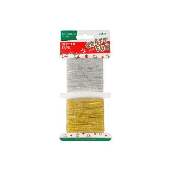 Dodajte sjaj i eleganciju svojim kreativnim projektima uz glitter trake Craft With Fun, dostupne u zlatnoj i srebrnoj boji. Ovaj praktični set sadrži dvije trake, svaka dužine 5 metara, što pruža dovoljno materijala za različite dekorativne namjene.