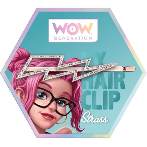 WOW Generation strass ukosnice dizajnirane su za djevojčice koje vole modu, sjaj i izražavanje kroz detalje. Kolekcija sadrži različite modele – s riječima poput DREAM, QUEEN, LOVE, GLAM, te upečatljivi motiv munje. Svaka ukosnica ukrašena je blistavim strass kamenčićima koji reflektiraju svjetlost i stvaraju predivan efekt sjaja.