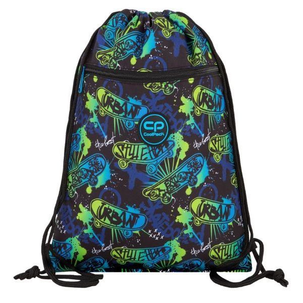 Ova CoolPack Skate Urban vrećica savršena je za učenike koji vole urbani stil i trebaju praktičnu torbu za tjelesni ili trening. Dizajnirana u dinamičnim plavim i zelenim tonovima, s grafiti motivima skateboardova, vrećica se ističe modernim i energičnim izgledom.