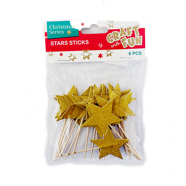 Dodajte blagdanski sjaj svojim kreativnim projektima uz ove elegantne zlatne zvjezdice na štapiću iz Craft With Fun serije. Svaka zvjezdica prekrivena je gliterom koji lijepo reflektira svjetlost, stvarajući očaravajući efekt u svakom aranžmanu.
